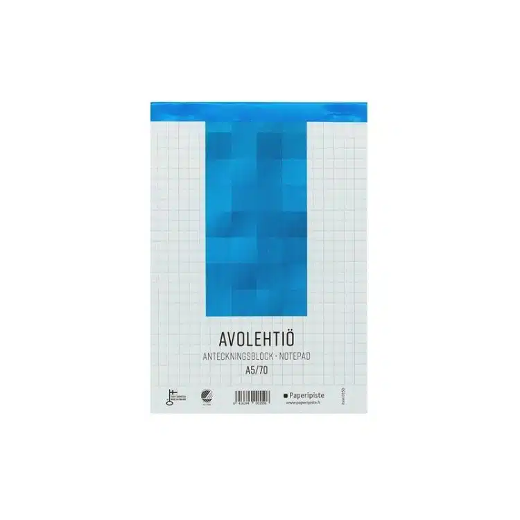 Paperipisteen avolehtiö on monipuolinen ja käytännöllinen valinta piirtämiseen, luonnosteluun, ideointiin sekä muistiinpanojen tekemiseen. Puuvapaasta paperista valmistetut ruudutetut (7 × 7 mm) sivut tarjoavat selkeän kirjoitus- ja piirustusalustan, ja perforointi mahdollistaa arkkien siistin irrottamisen tarvittaessa. Lehtiö on nidottu lyhyeltä sivultaan, mikä tekee siitä helppokäyttöisen niin pöydällä kuin liikkeelläkin. Kotimainen valmistus ja vastuulliset materiaalit näkyvät tuotteen ympäristömerkeissä: lehtiöllä on sekä Joutsenmerkki että Avainlippu.