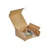 Korrvu Retention Box yhdistää ulkopakkauksen ja iskunvaimennuksen yhteen tehokkaaseen ratkaisuun. Laatikko on valmistettu kestävästä aaltopahvista, ja sen sisällä oleva polyuretaanikalvo pitää tuotteen tukevasti paikallaan. Pakkaus on nopea ja helppo koota – tuote asetetaan kalvon alle ja laatikon sivut taitellaan kiinni. Tämä itsetiivistyvä rakenne säästää aikaa ja materiaaleja.