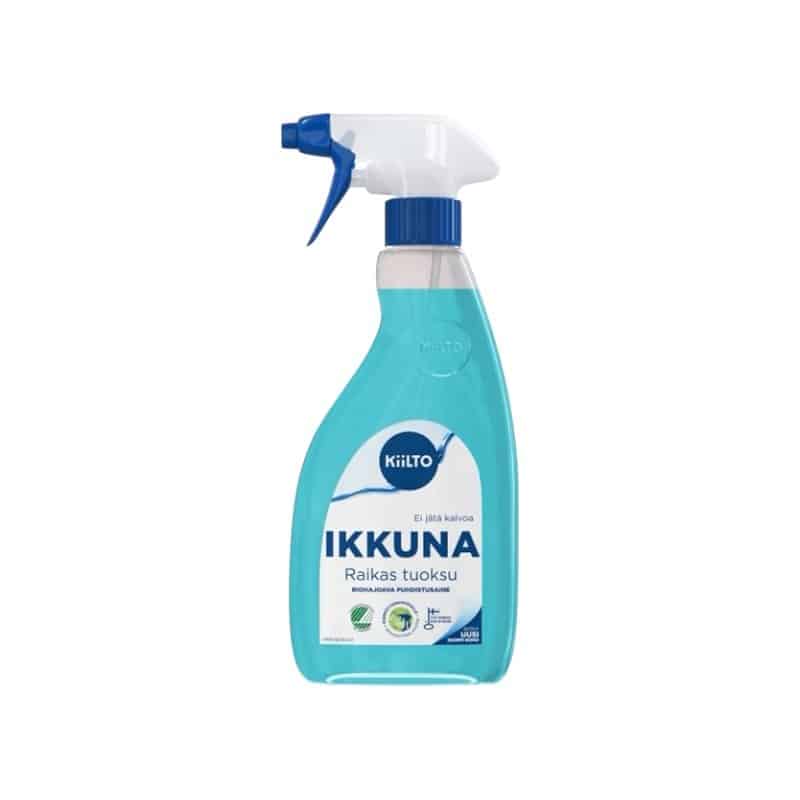 Kiilto Ikkuna on kotimainen ja biohajoava puhdistussuihke, joka puhdistaa helposti ja tehokkaasti erilaiset lasi- ja peilipinnat. Hajusteeton koostumus tekee tuotteesta turvallisen ja miellyttävän käyttää myös tuoksuherkillä. Soveltuu muun muassa ikkunoille, peileille, ovilaseille ja lasipöydille.Tuote on Joutsenmerkitty, mikä takaa sen ympäristöystävällisyyden ja tehokkuuden. Lisäksi sillä on Allergia-, Iho- ja Astmaliiton Allergiatunnus, joten se on turvallinen myös herkimmille käyttäjille. Valmistettu Suomessa, Hankasalmella.