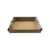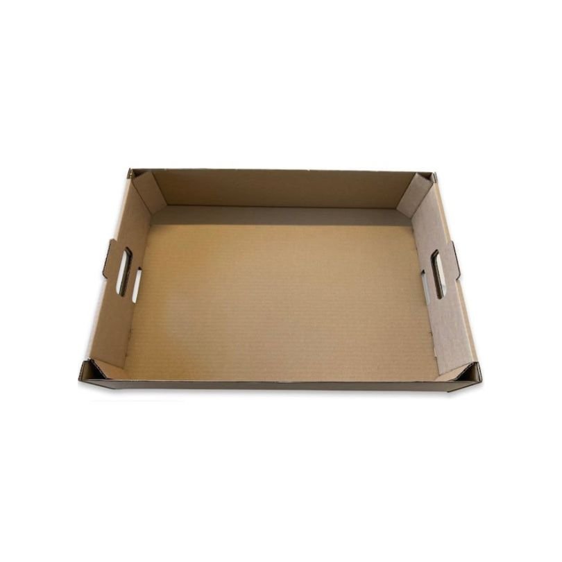 Tämä laadukas leipomolaatikko on suunniteltu erityisesti leipomotuotteiden pakkaamiseen, säilytykseen ja kuljetukseen. Sen kanneton, tarjotinmallinen muotoilu mahdollistaa helpon pääsyn tuotteisiin ja kantokolot helpottavat laatikon siirtämistä. Kestävä C-aaltopahvimateriaali tarjoaa riittävän tukevuuden ja suojan herkille tuotteille, kuten leivoksille, pullille ja leiville.