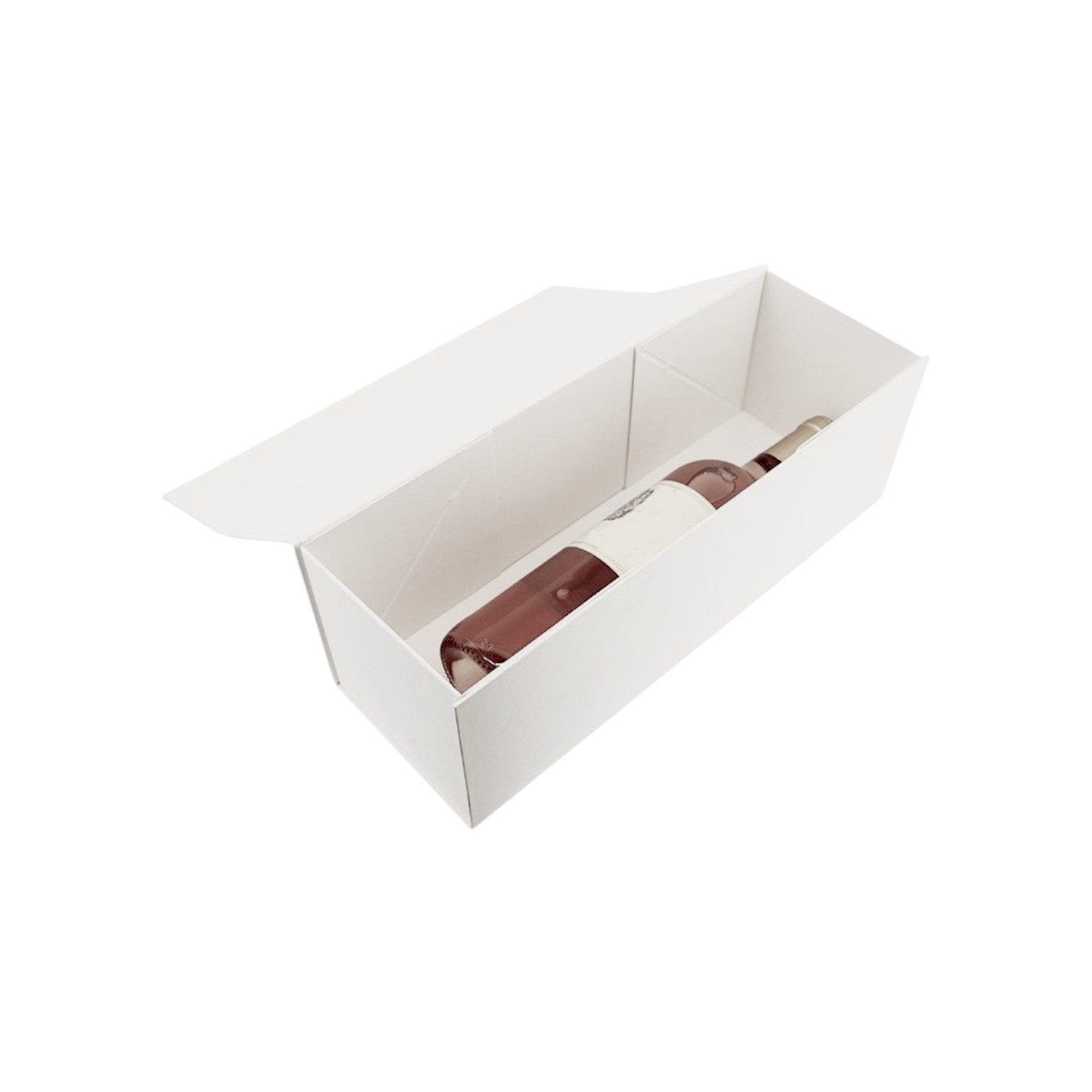 Tyylikäs ja kestävä viinipullolaatikko magneetilla on täydellinen valinta, kun haluat pakata lahjaviinin, kuohuviinipullon tai muun juhlapullon näyttävästi. Tilava lahjarasia sopii erinomaisesti myös esimerkiksi tekstiilien tai muiden lahjatavaroiden pakkaukseen. Pullolaatikon magneettikiinnitteinen kansi tekee siitä sekä käytännöllisen että edustavan. Mattapintainen liner-paperikoristaa sekä sisä- että ulkopintaa, antaen rasiasta ylellisen viimeistellyn ilmeen. Rasia on valmistettu tukevasta 1200 g/m² kartongista, joten se kestää painavammatkin lahjat turvallisesti.
