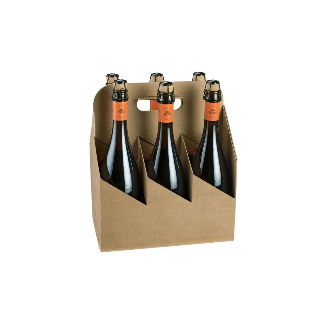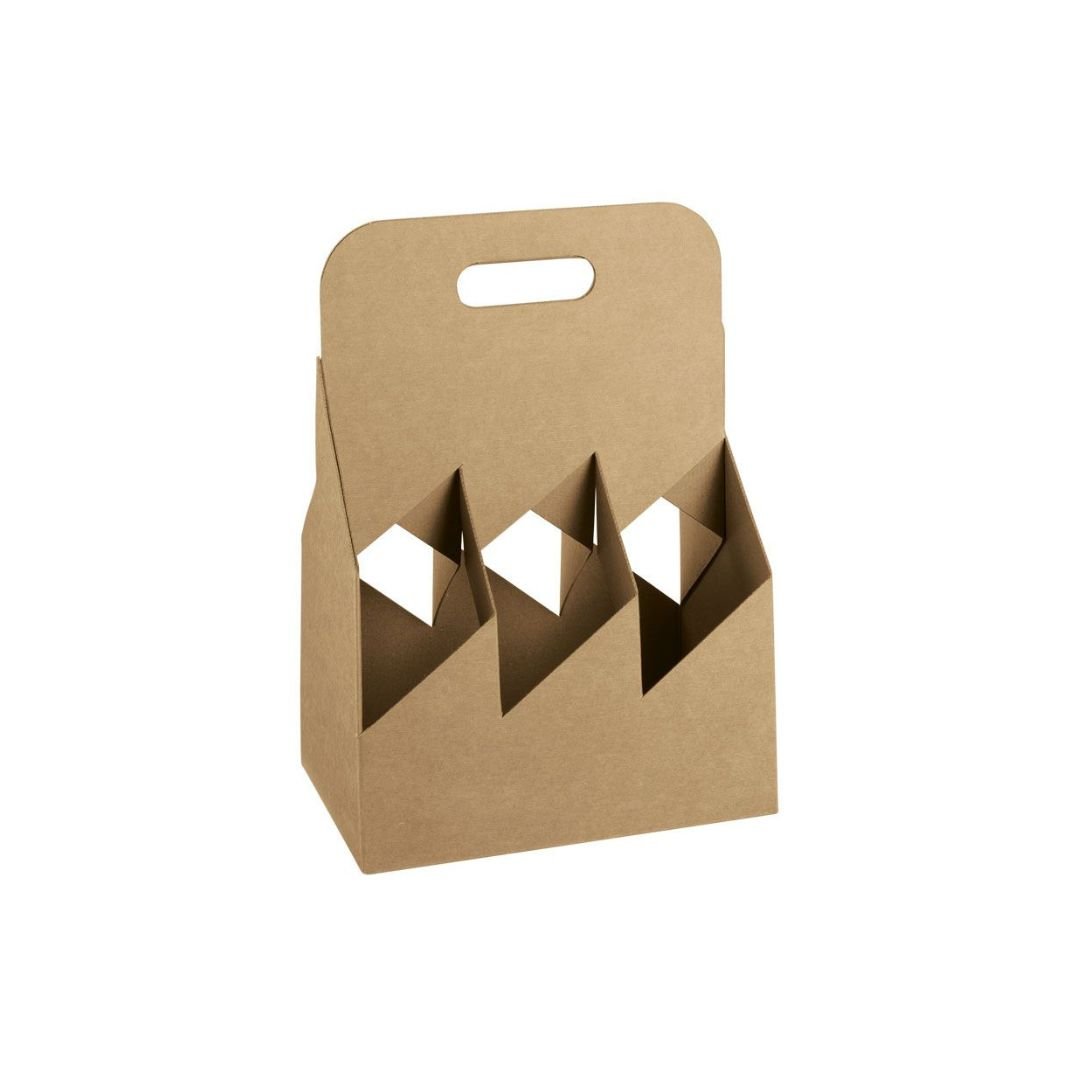 Pahvinen pullokori ruskean tai mustan värisenä 2, 4 tai 6 pullolle. Toimitetaan litteänä.