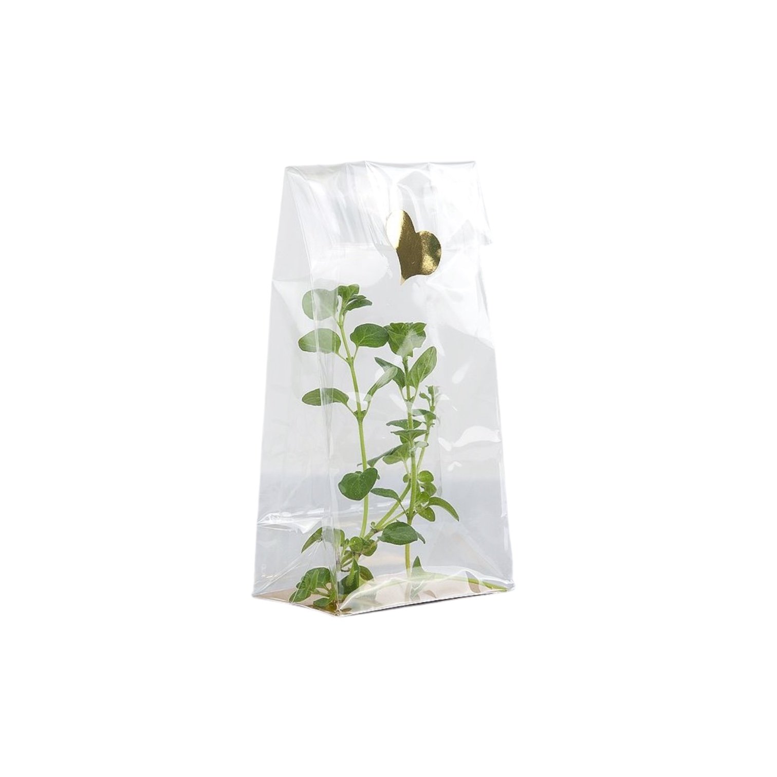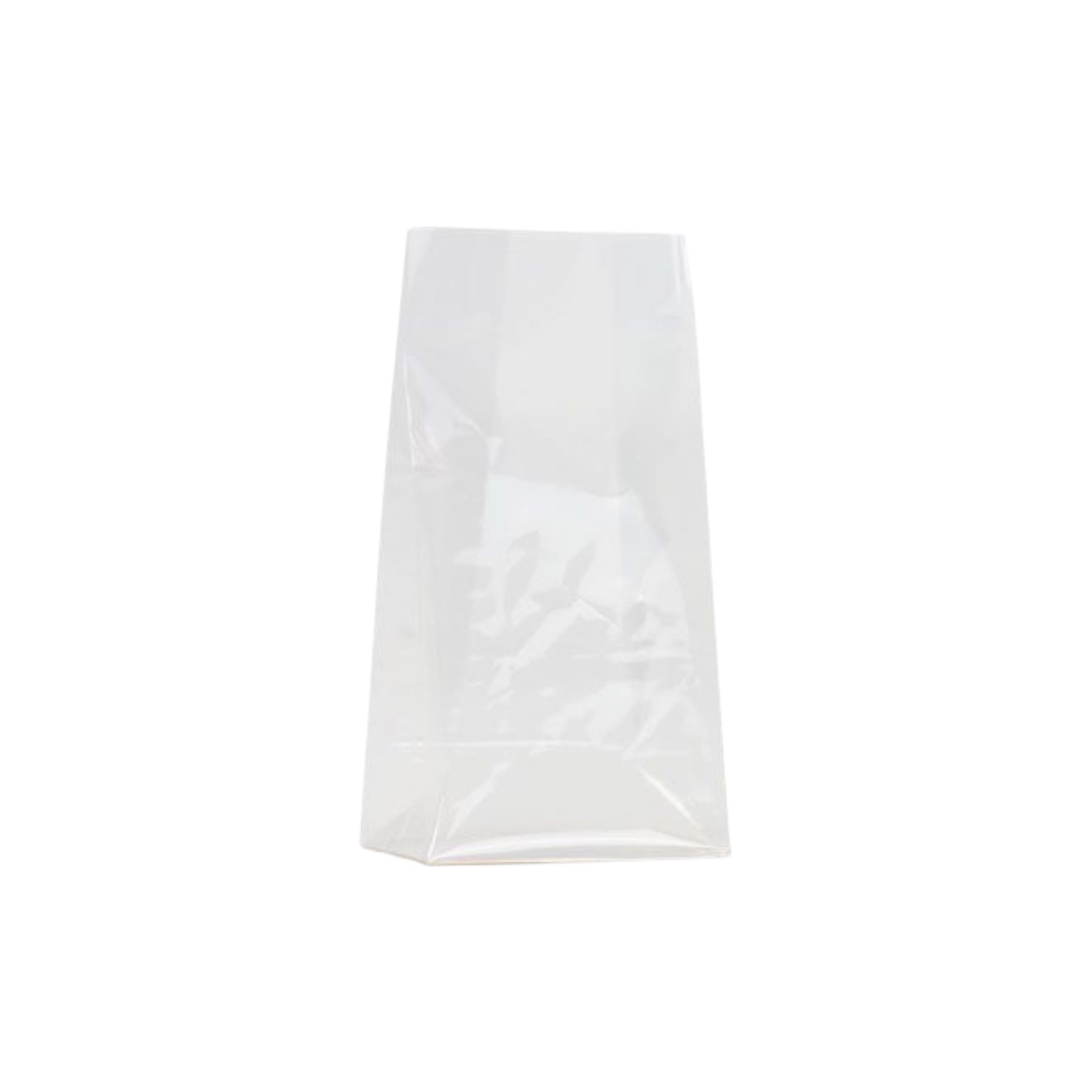 Läpinäkyvä, tasapohjainen sellofaanipussi on erinomainen valinta tuotteiden esillepanoon ja lahjapakkauksiin. Pussin saumattu pohja tekee siitä tiiviin ja käyttökelpoisen myös hienojakoisille tai rasvaisille elintarvikkeille.