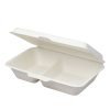 Tämä ekologinen takeaway-rasia on valmistettu sokeriruo’osta, joka on kompostoituva materiaali. Soveltuu kylmien tai kuumien take-away-aterioiden pakkaamiseen, lähettämiseen ja tarjoiluun. Voidaan laittaa myös mikroaaltouuniin. Rasian materiaali eristää hyvin lämpöä ja pitää ruoan lämpimänä pitkään.